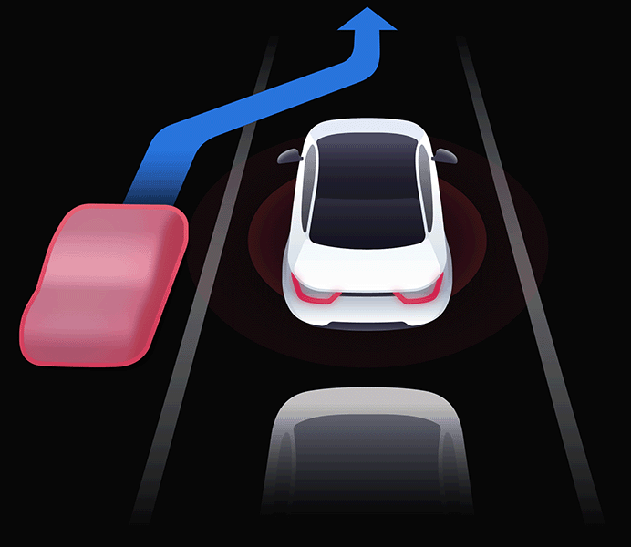 차선 이탈, 전방 추돌 등 위험 요소를 AI가 실시간 감지하고, 운전자의 시야를 방해하지 않는 위치와 형태로 필요한 순간에만 시각적으로 안내합니다.