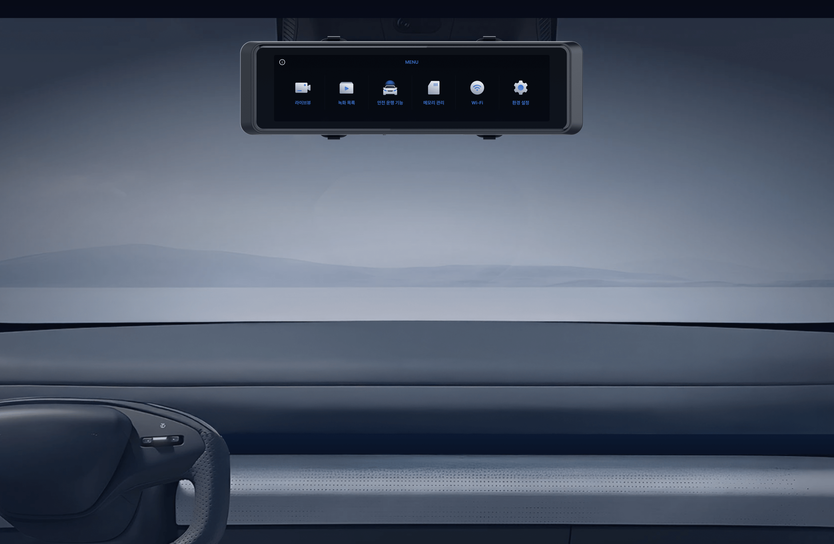 홈 화면에 실시간 주행 영상을 바로 표시하고, 운전 중 꼭 필요한 정보만 간결하게 보여주어 빠르게 상황을 파악할 수 있게 구성했습니다.
