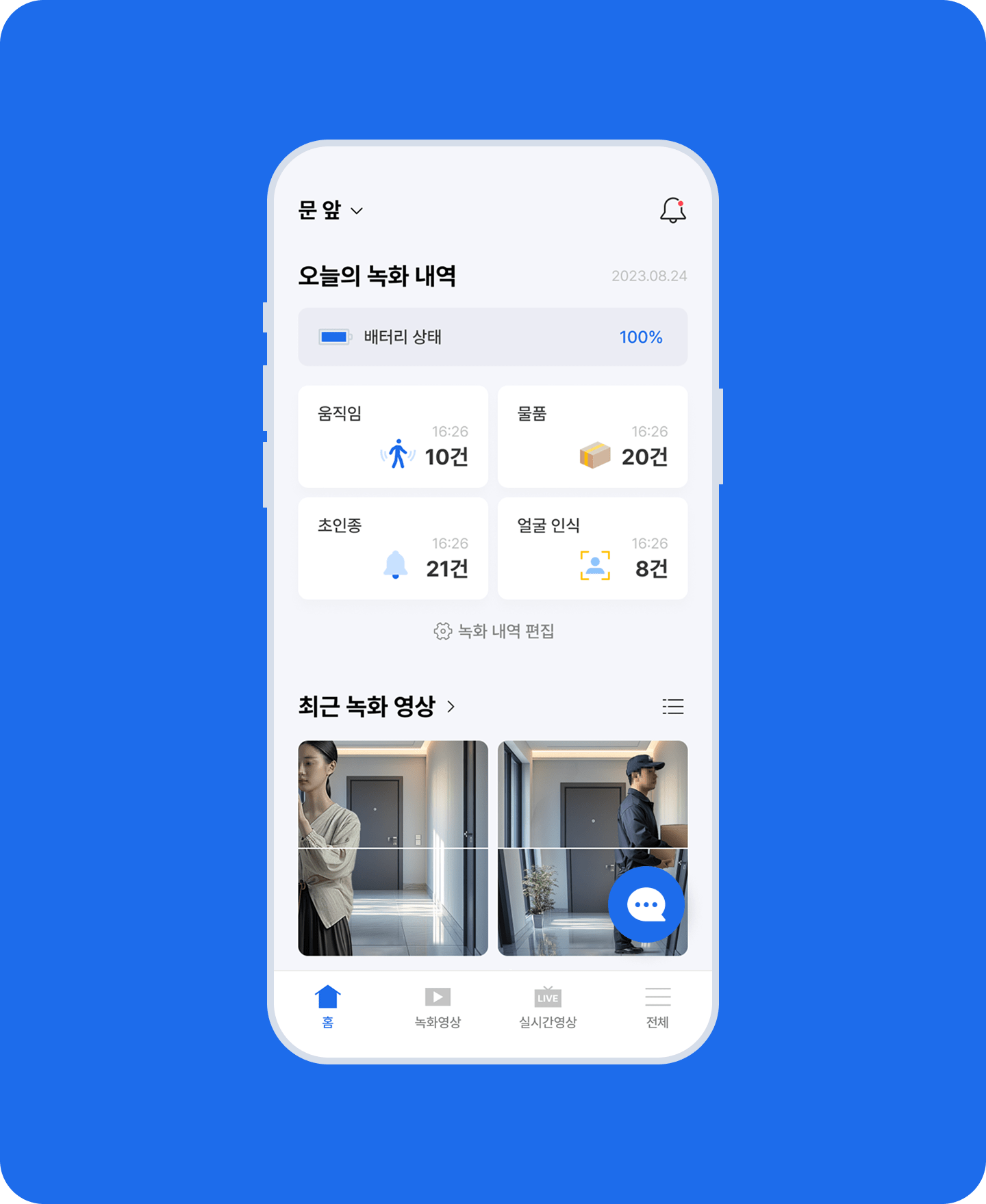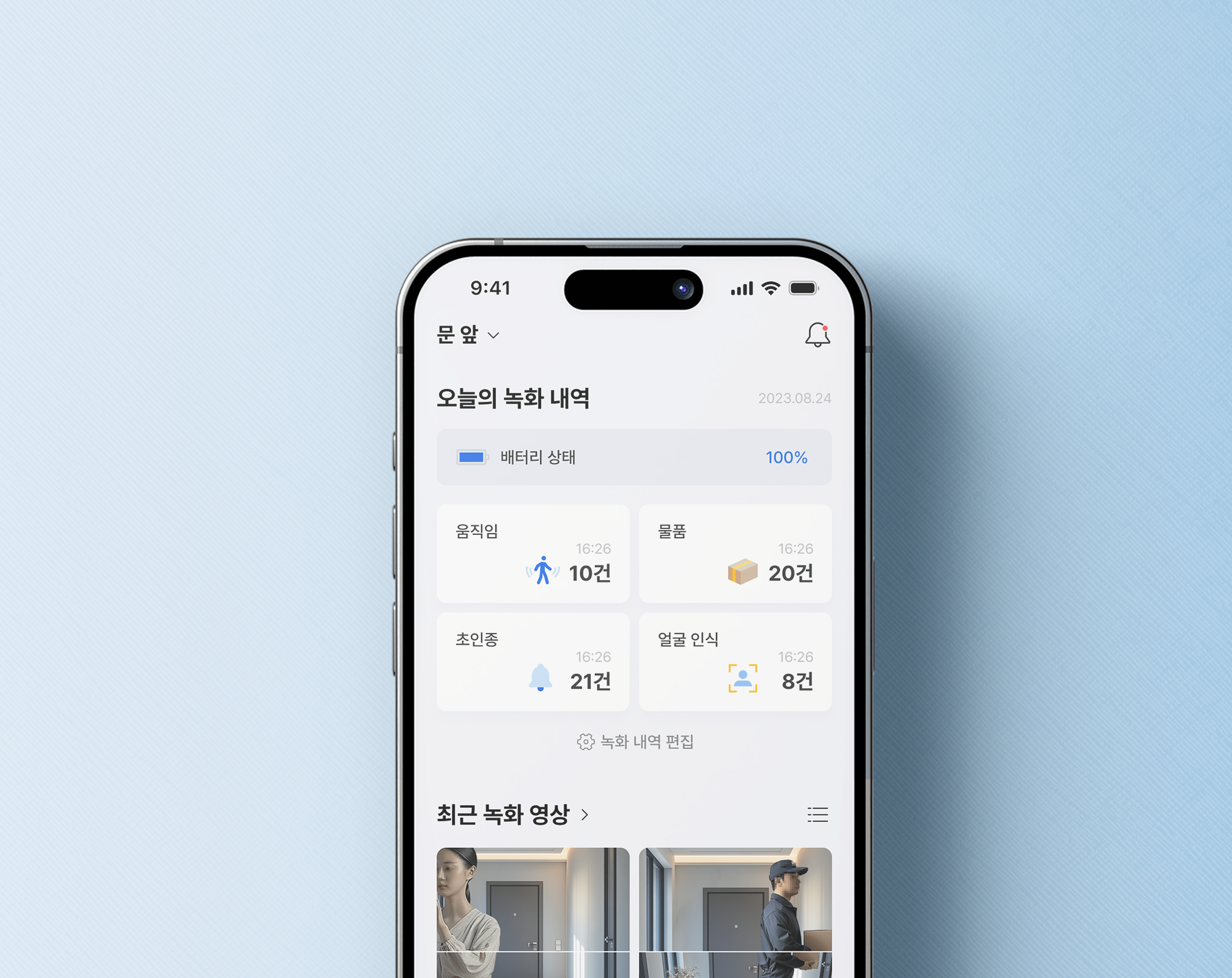 원하는 기능에 빠르게 접근할 수 있도록 직관적인 탐색 방식 및 간소화된 네비게이션 제공으로 화면 구조를 명확하게 하고, 중요한 이슈만 확인할 수 있도록 핵심 정보만을 요약한 히스토리 기능을 제공합니다. 또한 언제든 집 앞에서 일어나는 상황에 대해 누구나 즉각적인 대응이 가능하도록 쉽고 빠른 컨트롤 UI와 다양한 기기 제어 기능을 제공합니다.