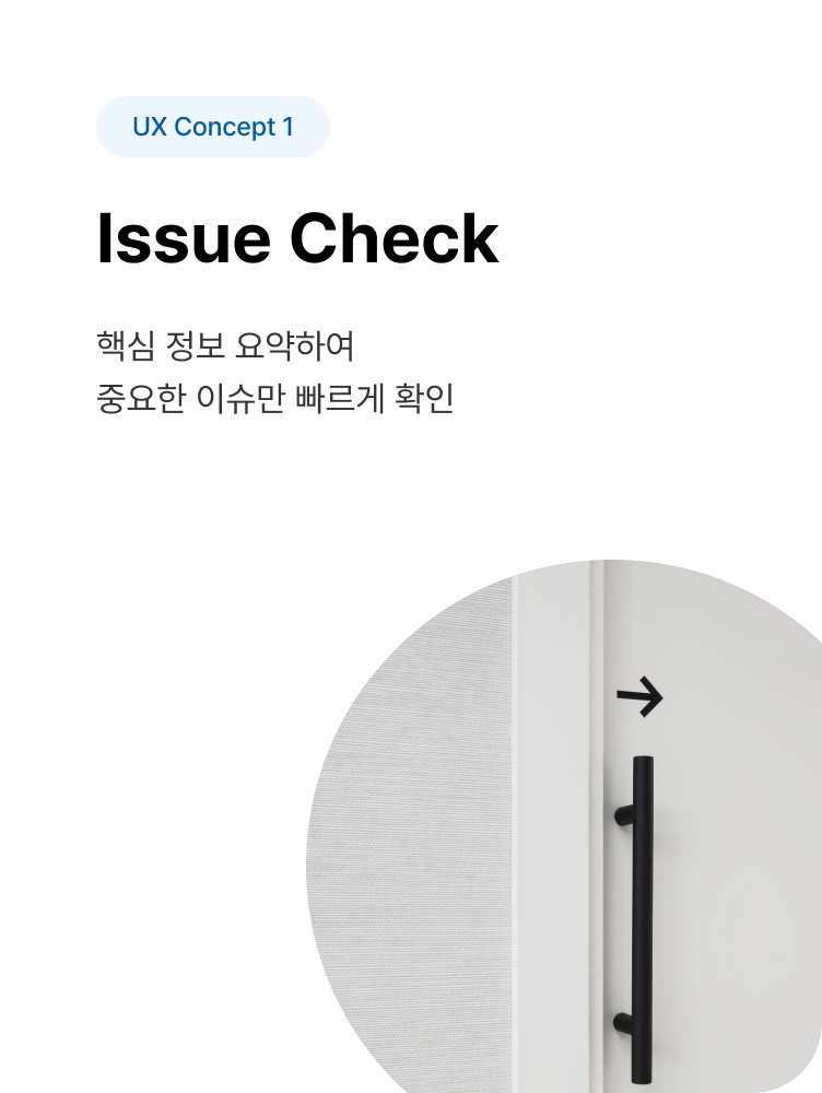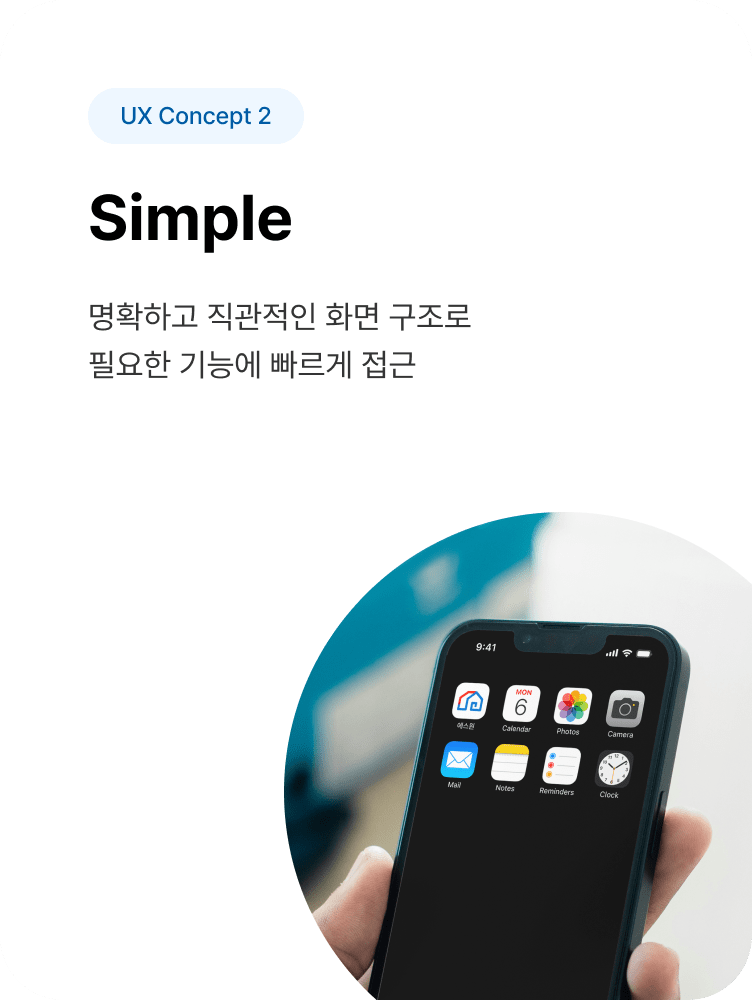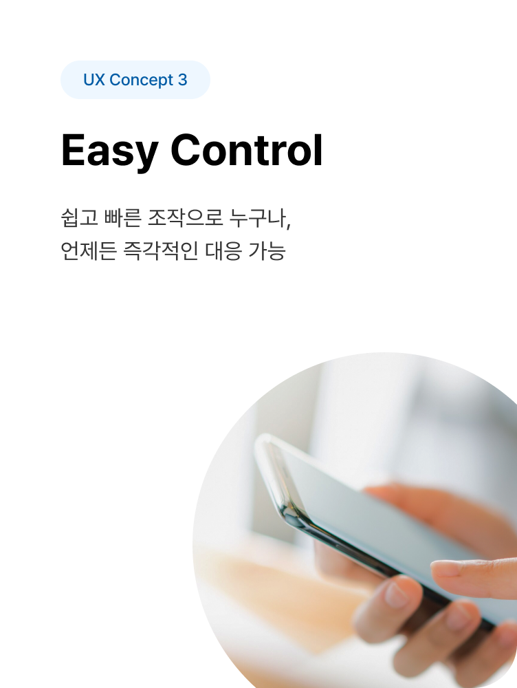 사용자의 목적 달성 단계를 최소화하기 위해, 에스원 휴엔홈 도어캠은 3가지 컨셉 키워드에 초점을 맞춘 UX/UI를 제공합니다.