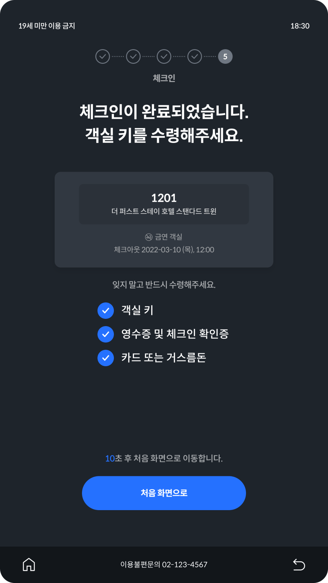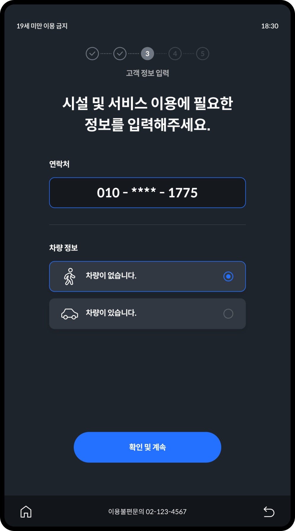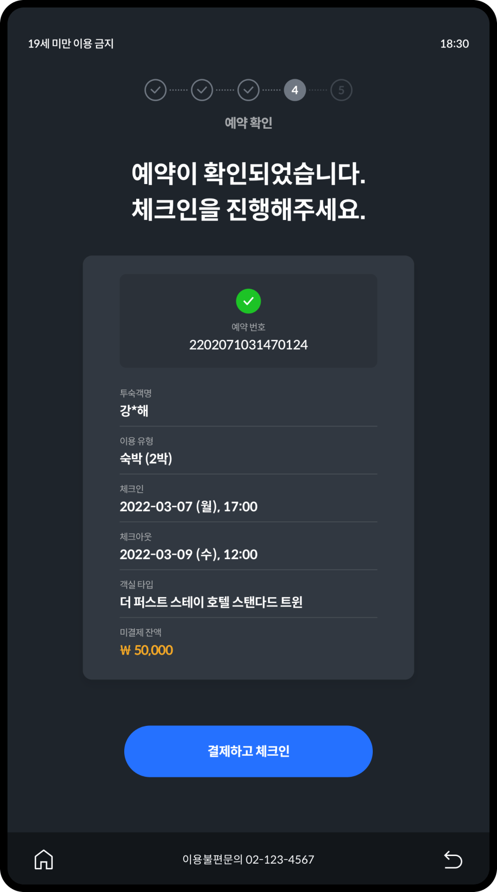 사용자에게 상황에 맞는 진행 상태를 직관적인 단계별 표시와 가이드 메시지로 제공하여순차적으로 쉽고 빠르게 체크인 서비스를 이용하는 데 도움을 줄 수 있습니다.