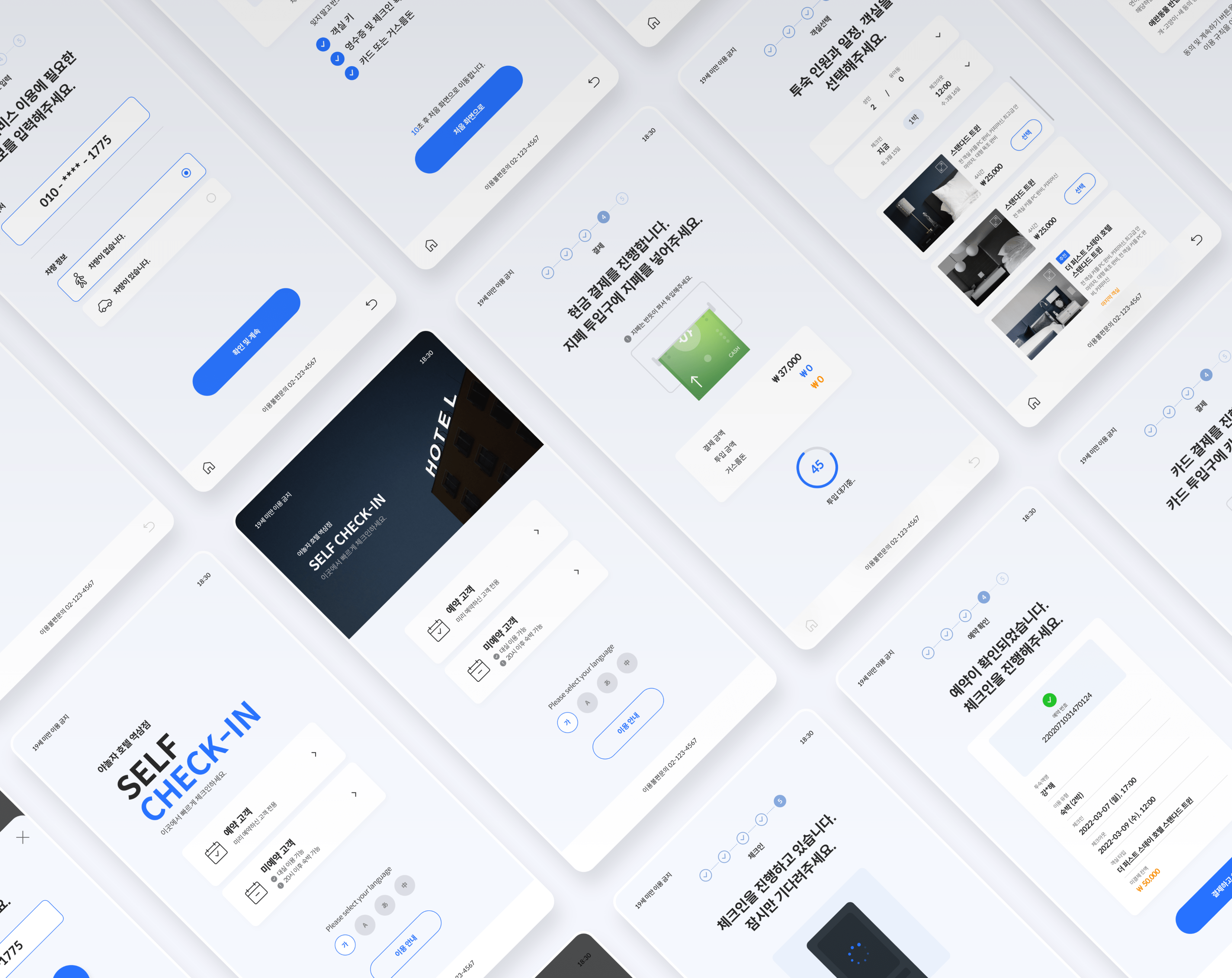 Kiosk 디바이스의 특성과 기존 UI를 분석하여 더욱 쉽고 빠른 체크인 서비스를 제공하기 위해, 사용자의 인지 영역과 시선의 흐름을 고려한 레이아웃을 구성하고, 통일된 스타일 요소를 활용하여 리뉴얼 작업을 진행하였습니다.