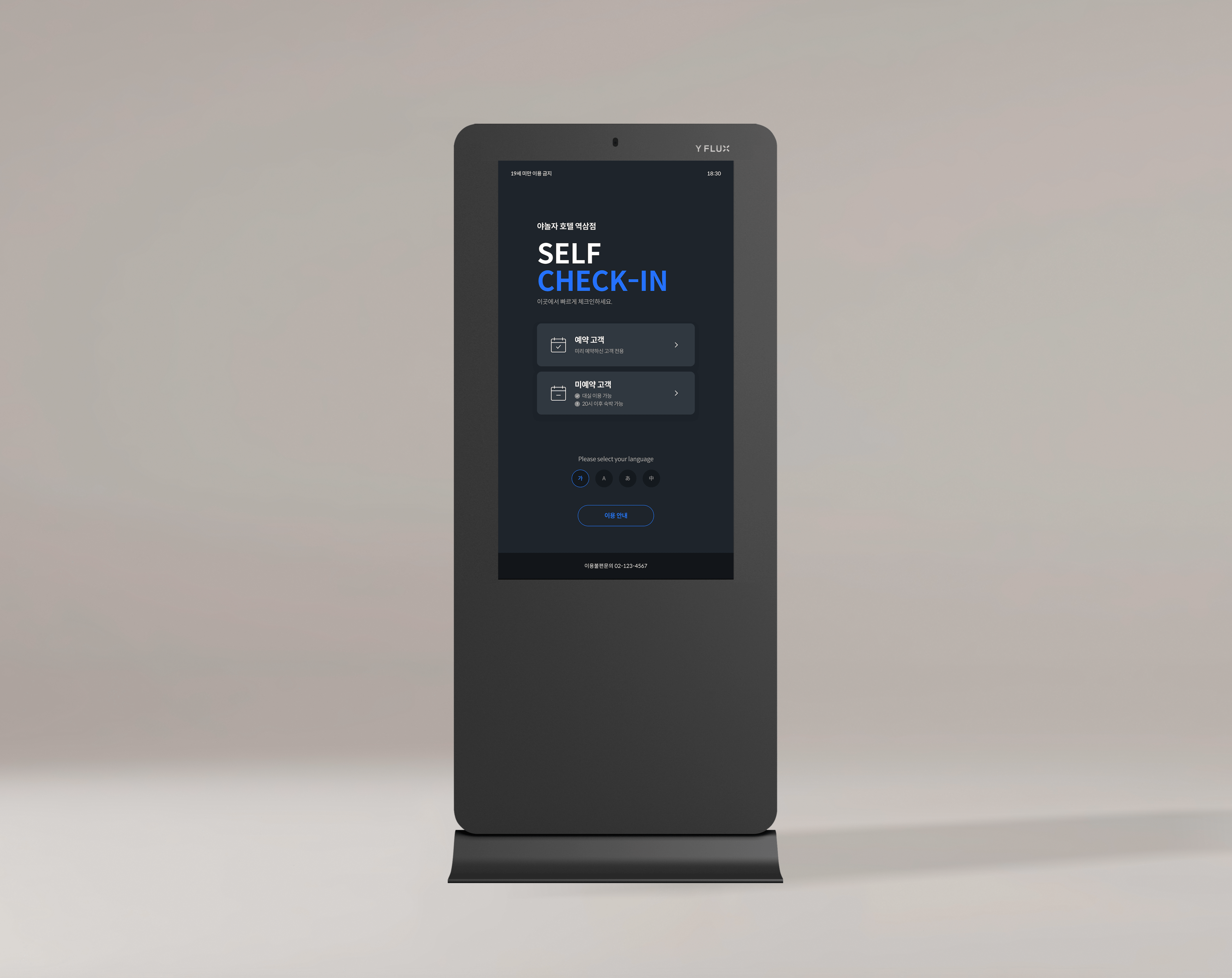 Yanolja Y FLUX Kiosk는 고객의 편의성과 호텔 운영의 효율을 증대시키는 셀프 체크인 솔루션입니다.